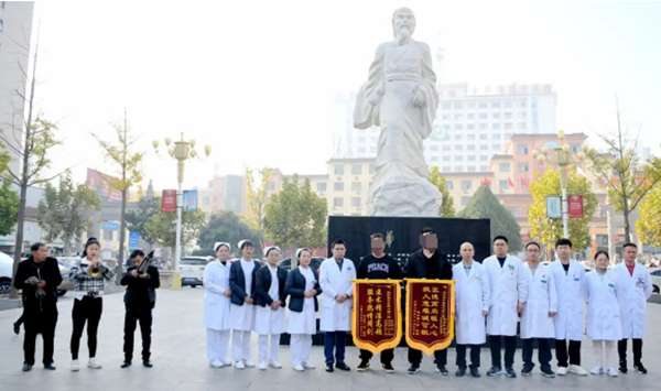 11月21日上午,太和县中医院华佗广场唢呐响彻、热闹非凡,一名出院患者家属怀着激动的心情领着唢呐队,将印有“医术精湛高超、服务热情周到”,“医德高尚暖人心、救人危难诚可敬”两面鲜红的锦旗送到了党委委员、副院长陈光瑞及心病二科主任姚建斌,护士长张艳和全体医护人员的手里。