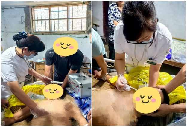有着丰富重症护理经验的副主任护师刘彩云,先是细致查阅患者既往病史与当前身体状况,精准核对导管型号及更换周期,随后以娴熟的手法完成操作与固定,每一个动作都透着精准与轻柔。操作间隙,她不忘耐心叮嘱:“胃管喂食前后要用温水冲管,这样能减少胃管堵塞风险……”多年的重症护理积淀,让她对细节的把控近乎严苛:固定贴的角度、导管长度的标记,每一处都力求完美。“这些操作在ICU是日常,但上门服务更需精益求精,居家患者对专业指导的需求其实更迫切。”刘彩云的话语道出了这份工作的特殊意义。
