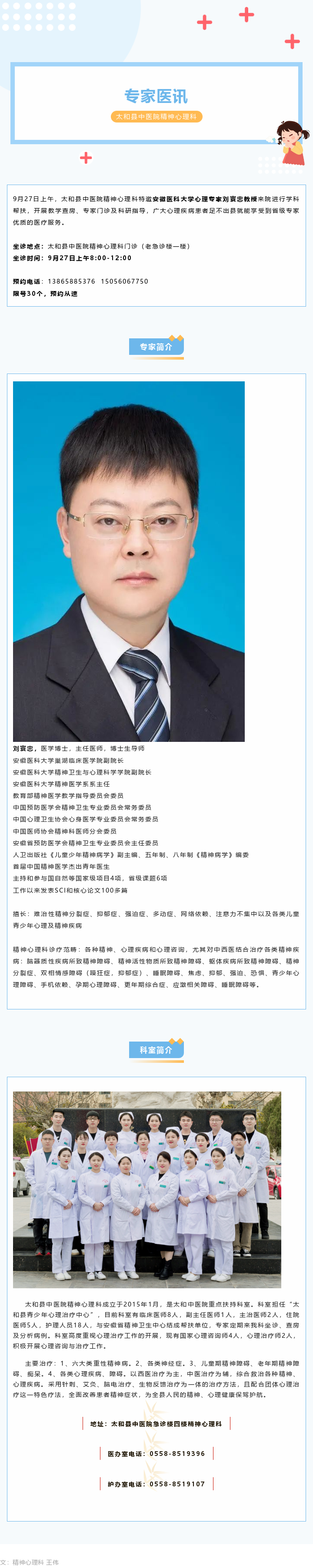 专家医讯:9月,安徽省精神心理专家刘寰忠教授亲临太和县中医院坐诊
