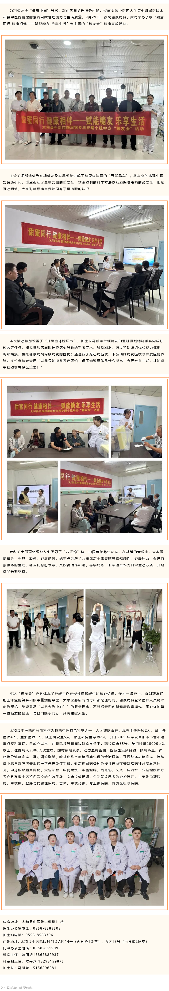 甜蜜同行 健康相伴丨赋能糖友 乐享生活——太和县中医院糖尿病专科护理小组举办“糖友会”活动