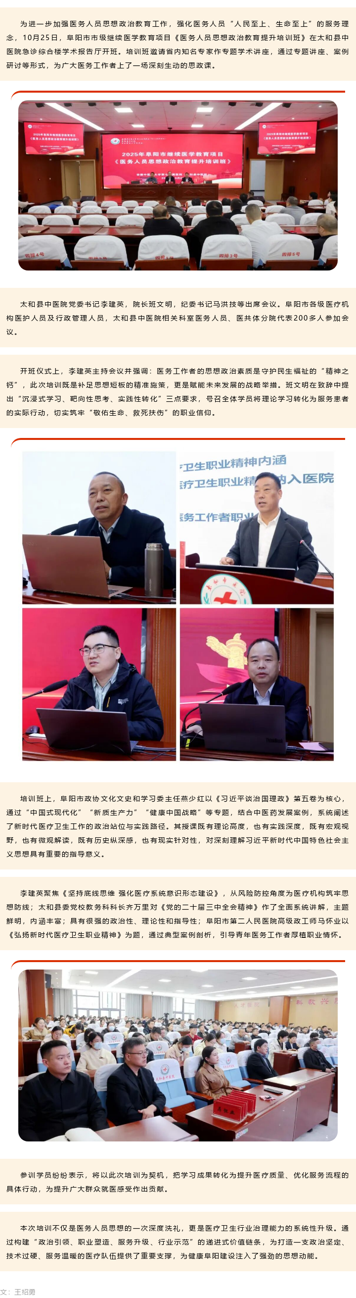 铸魂育人强根基 凝心聚力促发展——阜阳市医务人员思想政治教育提升培训班在太和县中医院成功举办