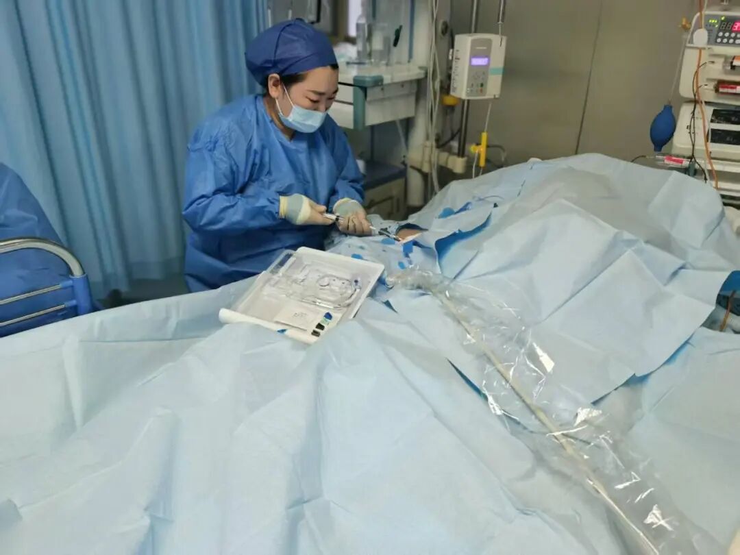 记得10月的一个夜晚,我刚下夜班还未到家,就接到紧急电话:“科室有位 78 岁的全身水肿患者,血管极难寻找,穿刺多次失败,请求支援建立静脉通路!”挂了电话,我立刻骑上电动车返回医院。深夜街道寂静,寒风刮在脸上,可我满心焦急——重症患者的每一分钟都关乎生死,早到一分钟,就多一分生的希望。穿上工作服,我带着导管穿刺包,推上彩超机直奔床旁。先轻声安抚家属并签署知情同意书,随后仔细评估血管,精准定位屏幕上的贵要静脉。消毒、铺巾、持针、进针…… 每一步都格外谨慎,凭借对血管位置的精准判断,针头顺利入管,回血的瞬间,大家悬着的心终于落下。送入导丝、扩皮,我将中长导管顺着“生命之桥”轻柔送入,用无菌敷料覆盖穿刺点。短短几分钟,静脉输液通路成功建立,药液缓缓滴入患者体内。家属激动地抓住我的手连声道谢,我擦了擦额头的汗,笑着回应:“这是我应该做的。”身为护理工作者,从没有“下班”的绝对界限。只要患者有置管紧急需求,无论是我刚下夜班还是休息,都会第一时间赶回岗位。