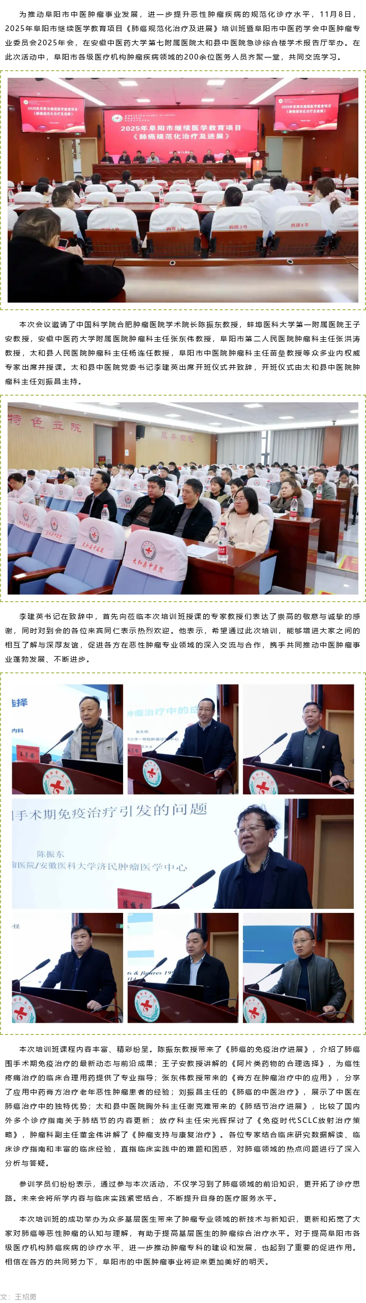 2025年阜阳市继续医学教育项目《肺癌规范化治疗及进展》培训班暨中医肿瘤专业委员会年会在我院举办