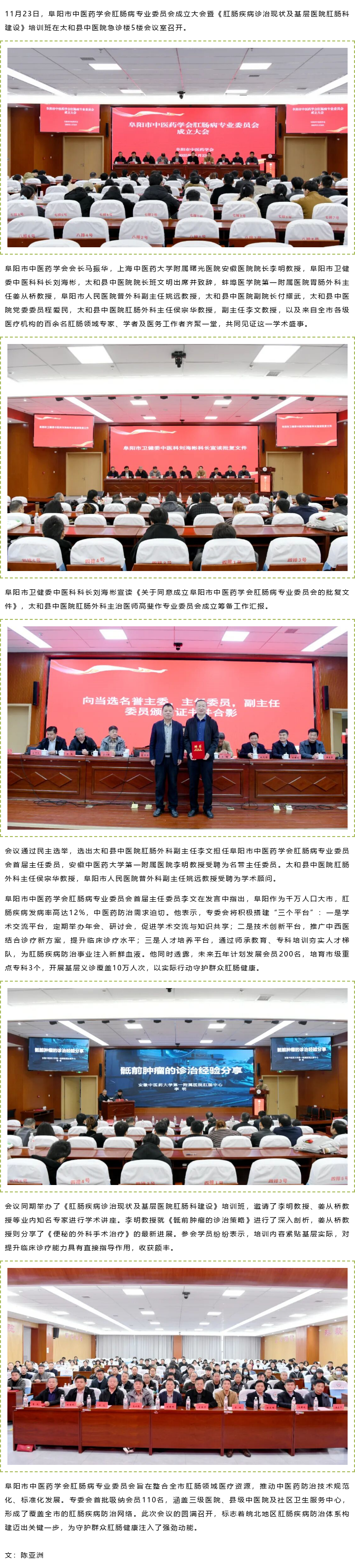 阜阳市中医药学会肛肠病专业委员会成立 李文当选首届主任委员