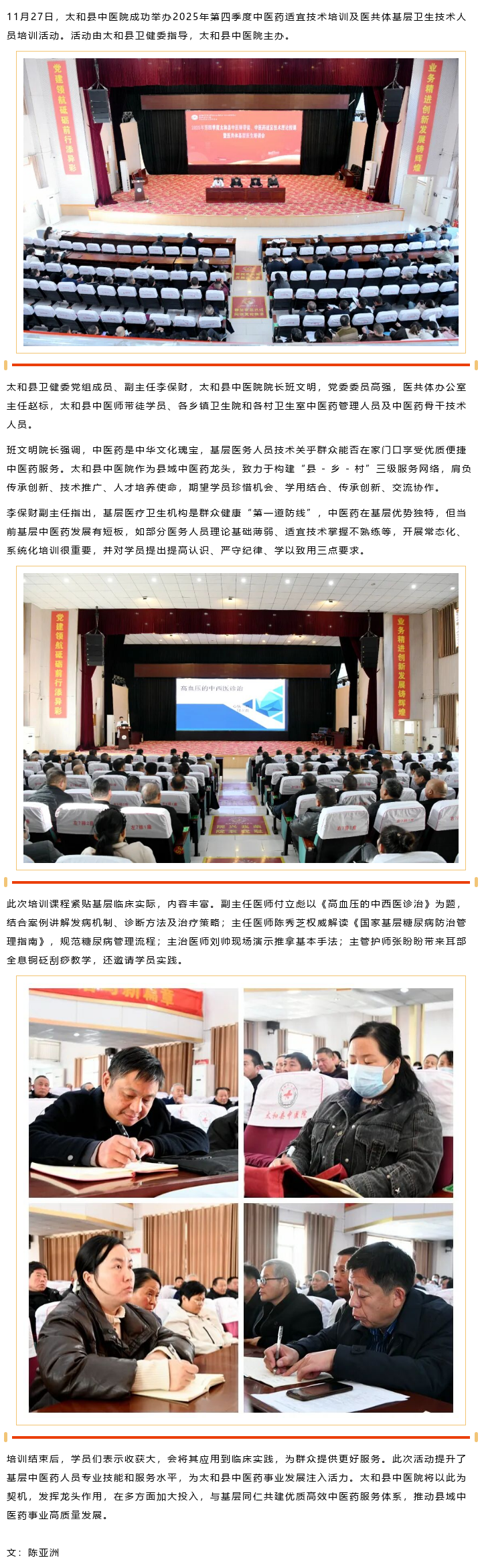 太和县中医院成功举办2025年第四季度中医药适宜技术培训及医共体基层卫生技术人员培训