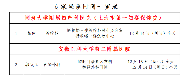 每周医讯(12月12日—12月18日放疗科、神经外科专家将在我院坐诊)
