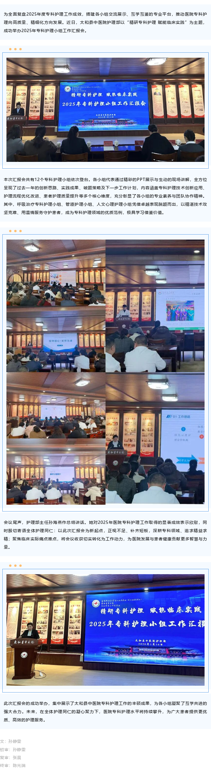 专科护理小组工作汇报会:精研赋能,共筑护理新高度
