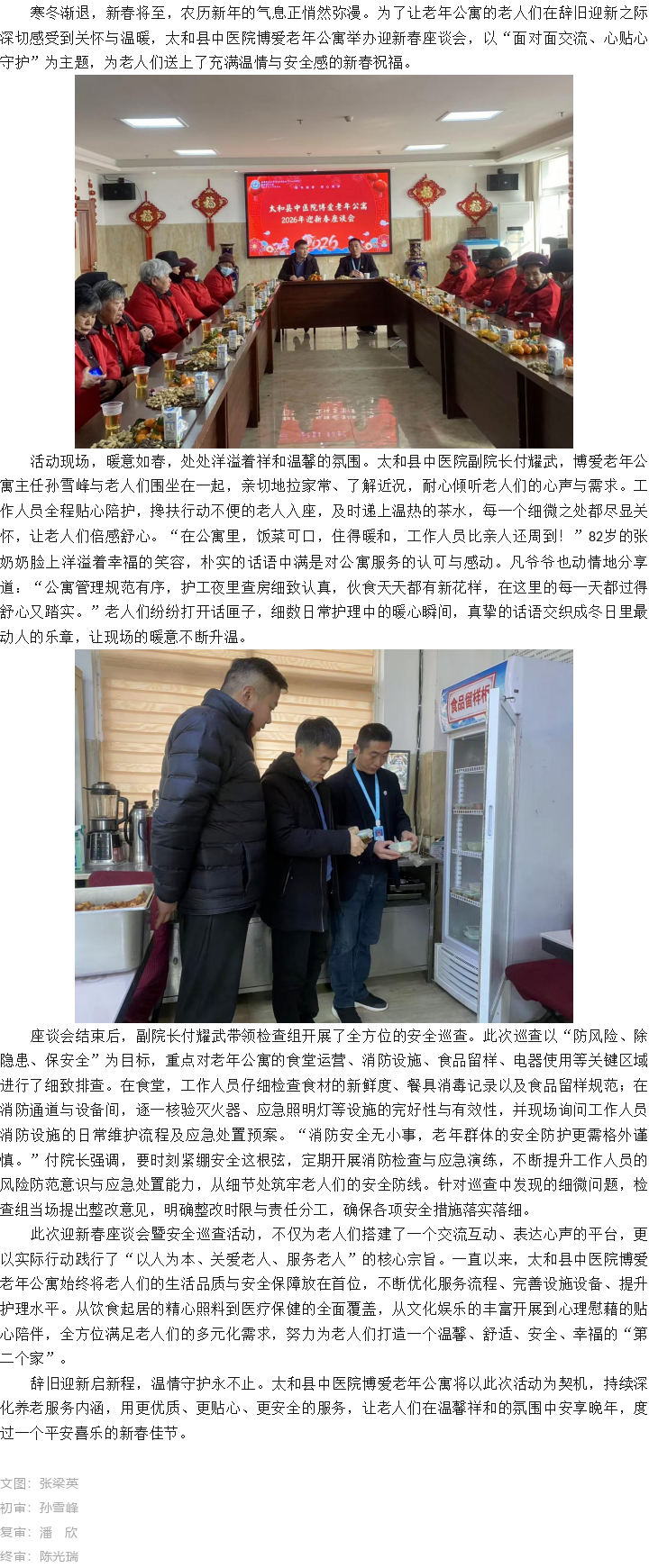 温情相聚贺新春,悉心守护伴桑榆——太和县中医院博爱老年公寓召开迎新春座谈会