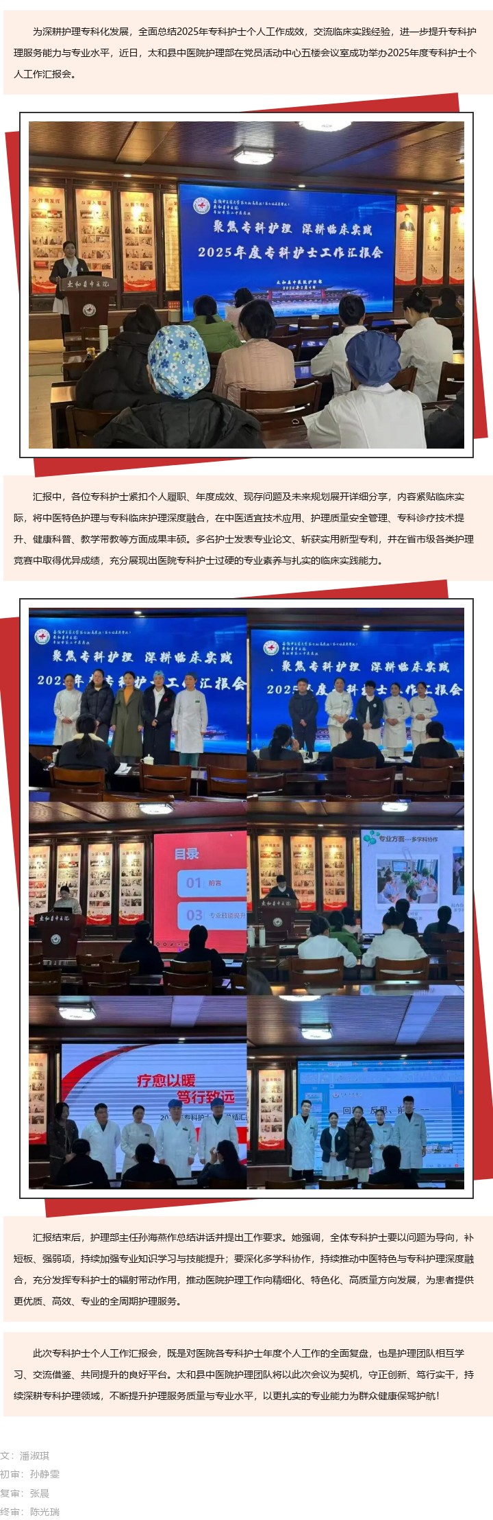 深耕专科护理 彰显专业担当丨太和县中医院召开2025年度专科护士个人工作汇报会