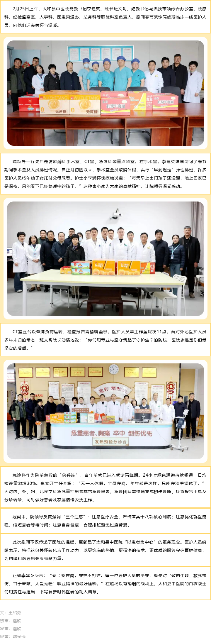 太和县中医院领导慰问春节就诊高峰期临床一线医护人员:温暖守护健康防线
