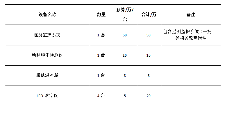 我院拟采购一批医疗设备,详见下表。请有意向的厂家或供应商提供产品基本信息、市场应用情况(用户名单)、市场价格(近三年中标价格)、功能介绍(PDF彩页、PPT或音视频资料)、技术参数(包含加盖公章PDF版及对应Word版各一份)、公司资质证照、诚信承诺函、联系方式等资料。(与产品相关的文件命名须按照公司名称+设备品牌+型号+文件内容,且各文件均需加盖公司公章,否则不予采纳),资料请压缩为一个压缩包发至邮箱thxzyyyxzbk@163.com,邮件名称请按“设备名称、设备厂家、供应商名称”的方式命名。资料提交截止日期为公告发布起三个工作日。