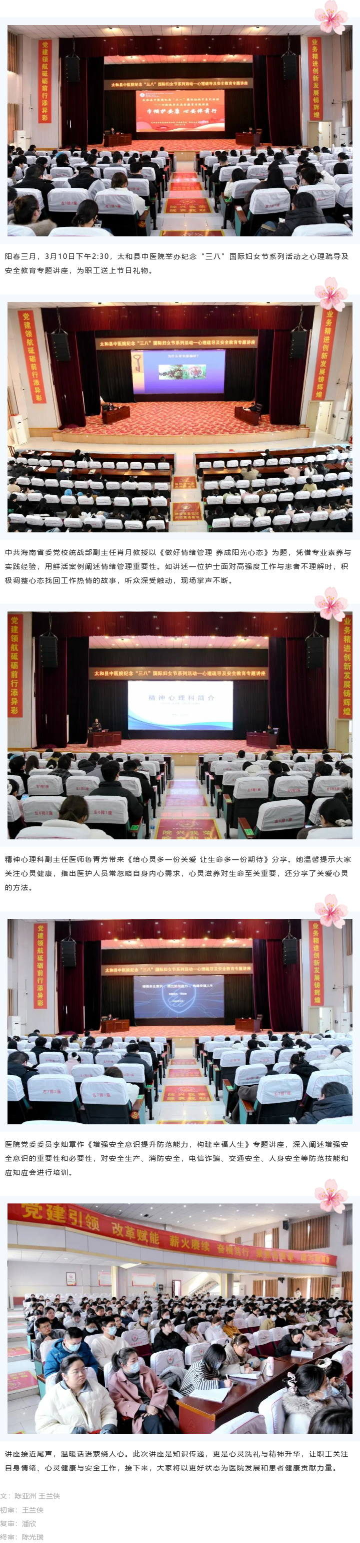 巾帼护安康 心安伴前行——太和县中医院“三八”专题讲座温情开讲